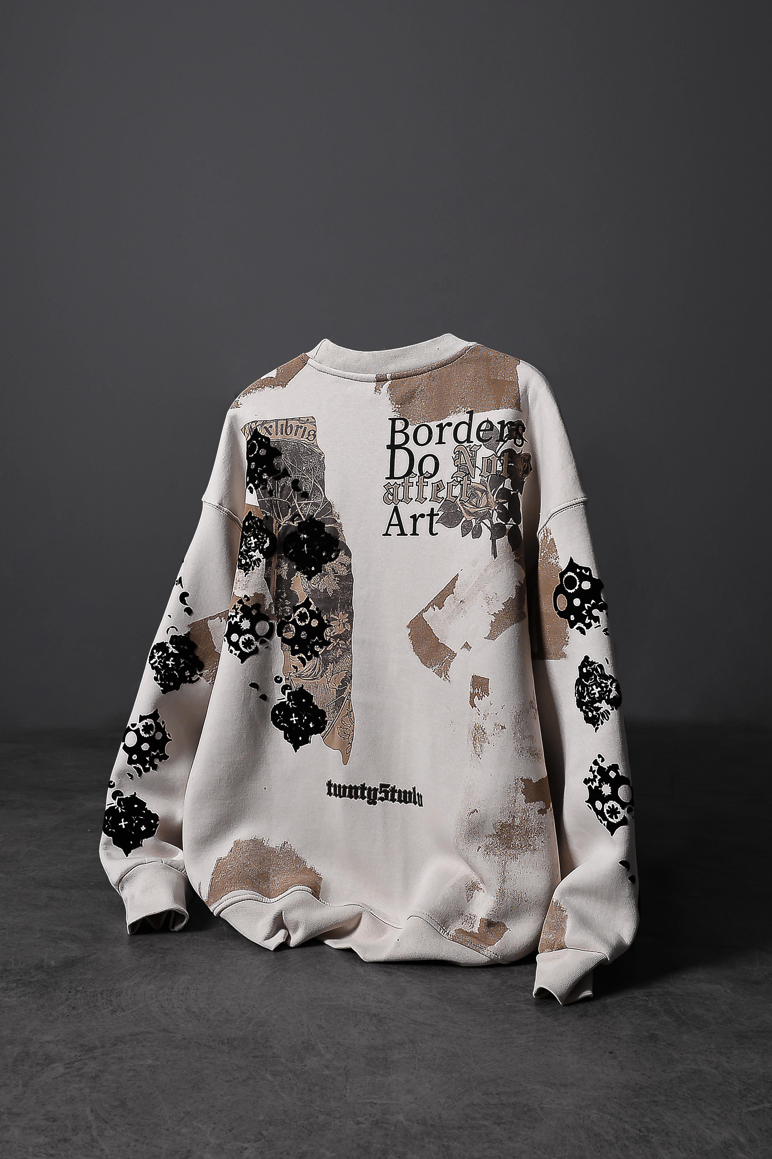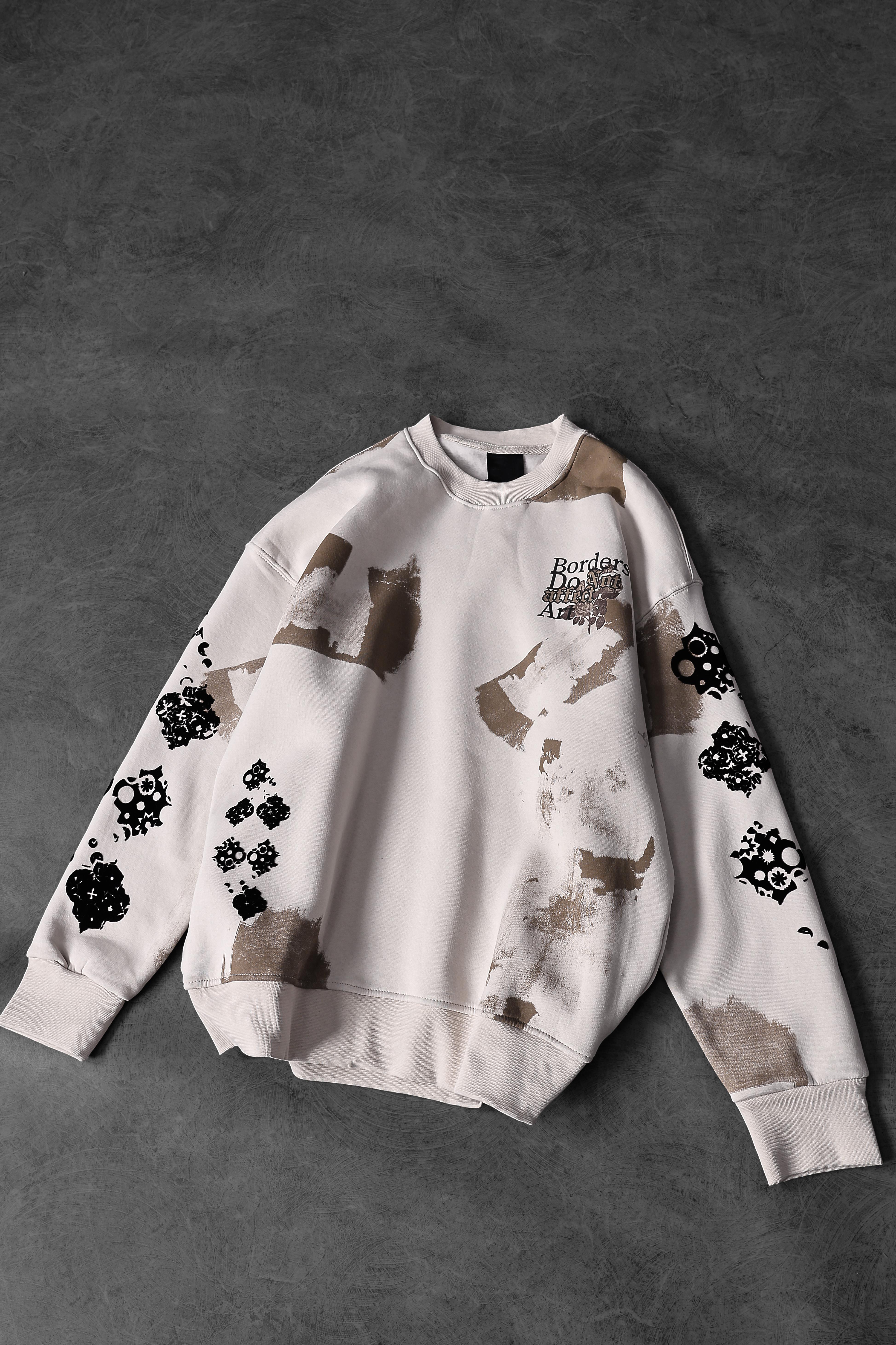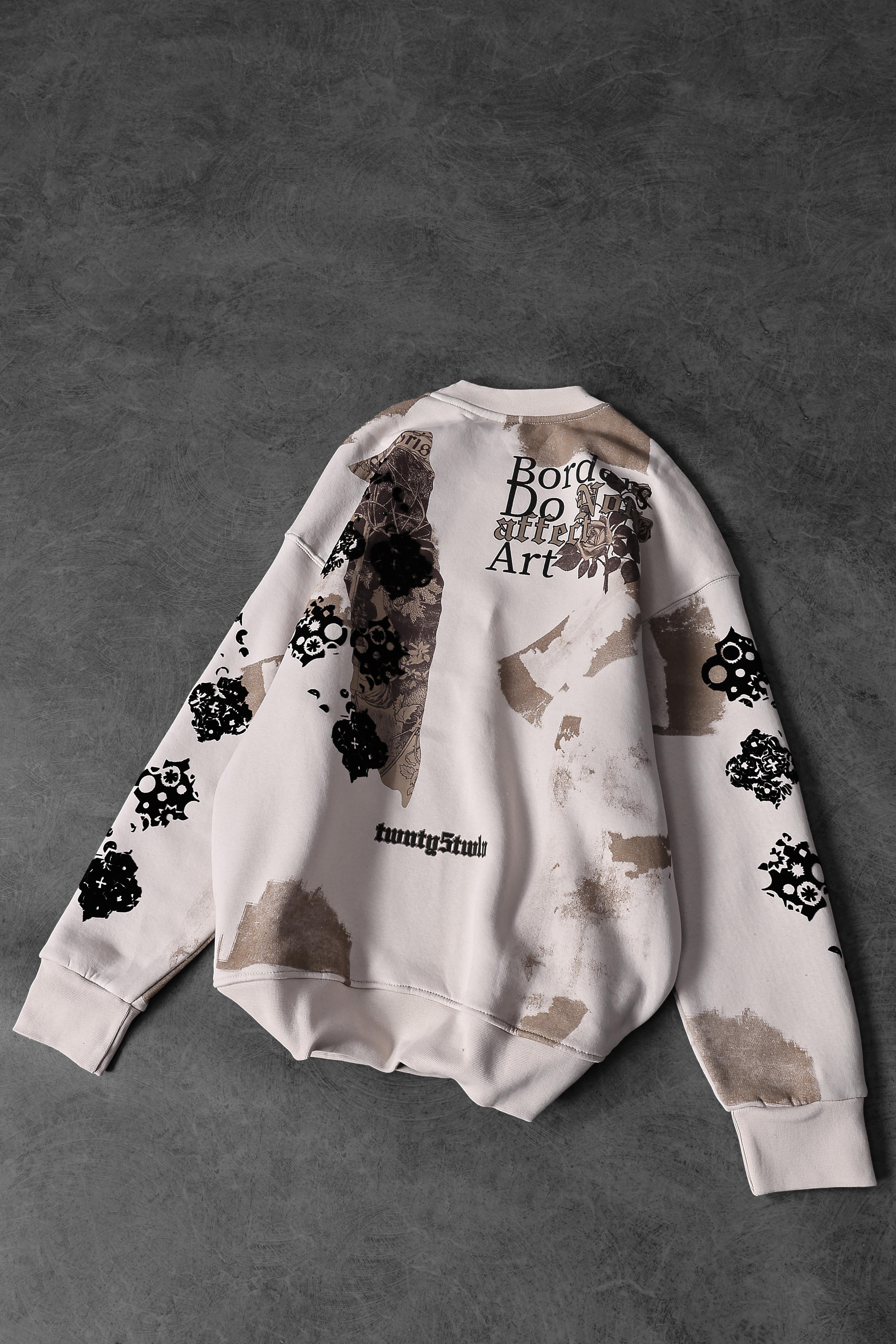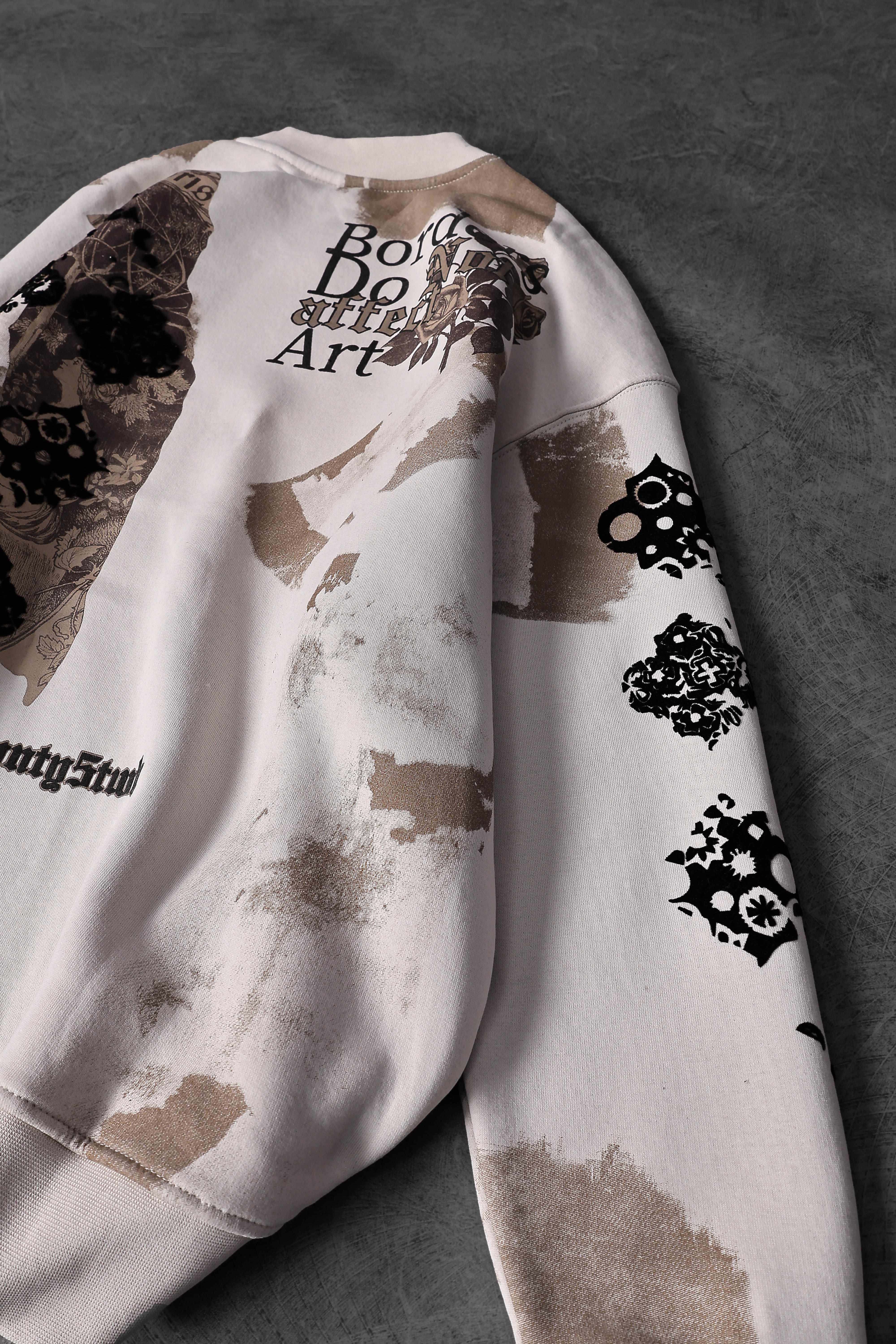 Erkek Bej Borders Flok Baskılı Oversize Sweatshirt (S5610)