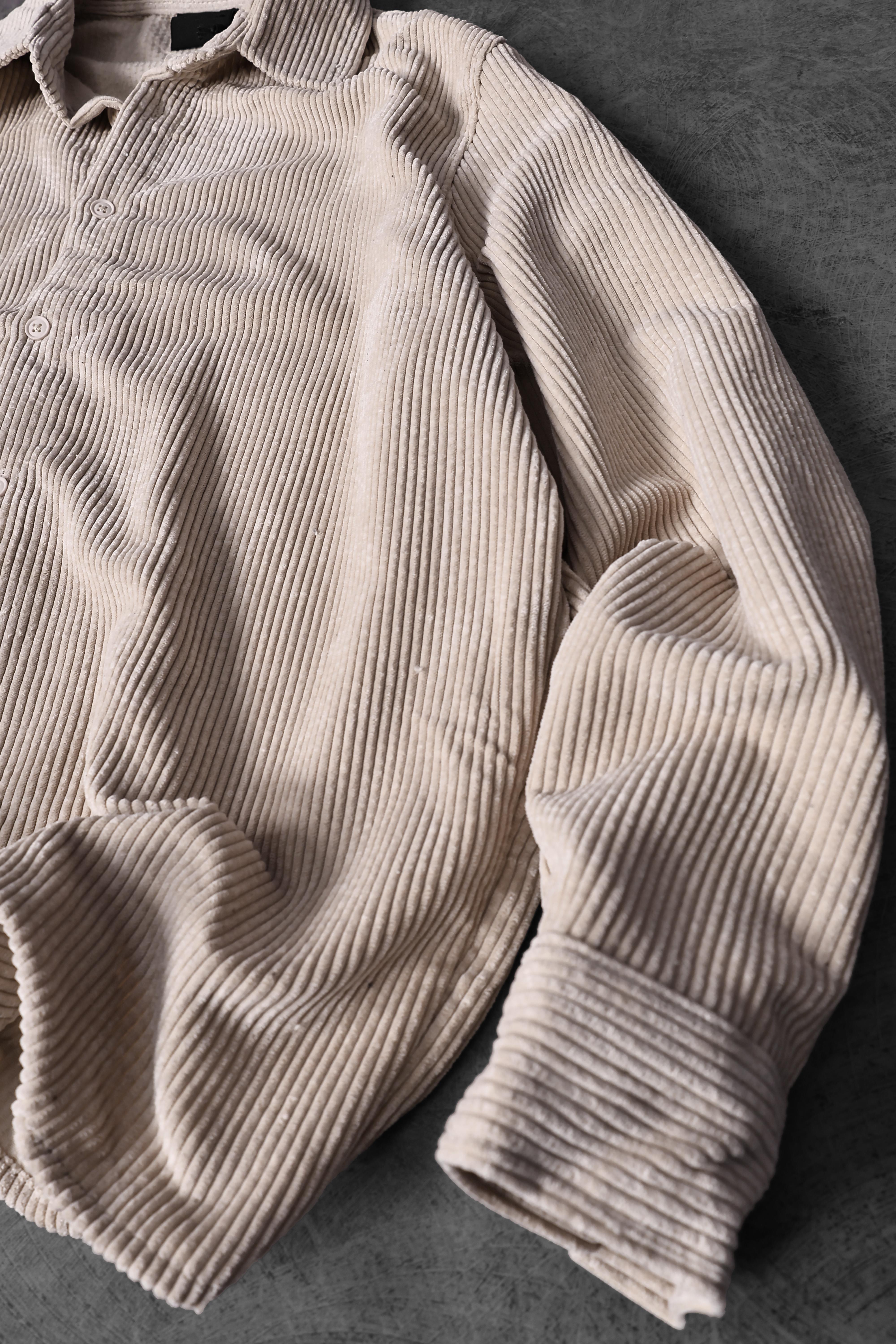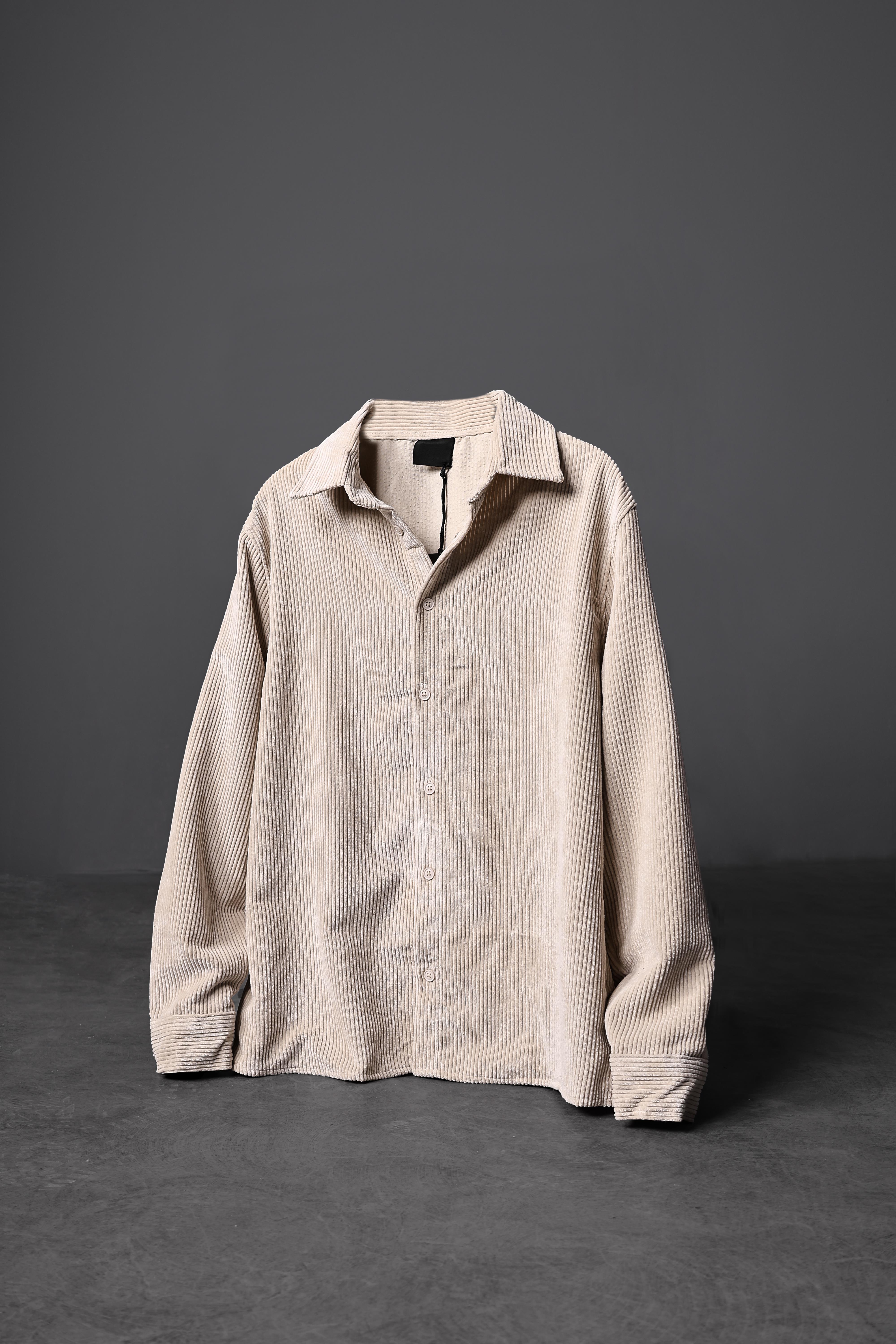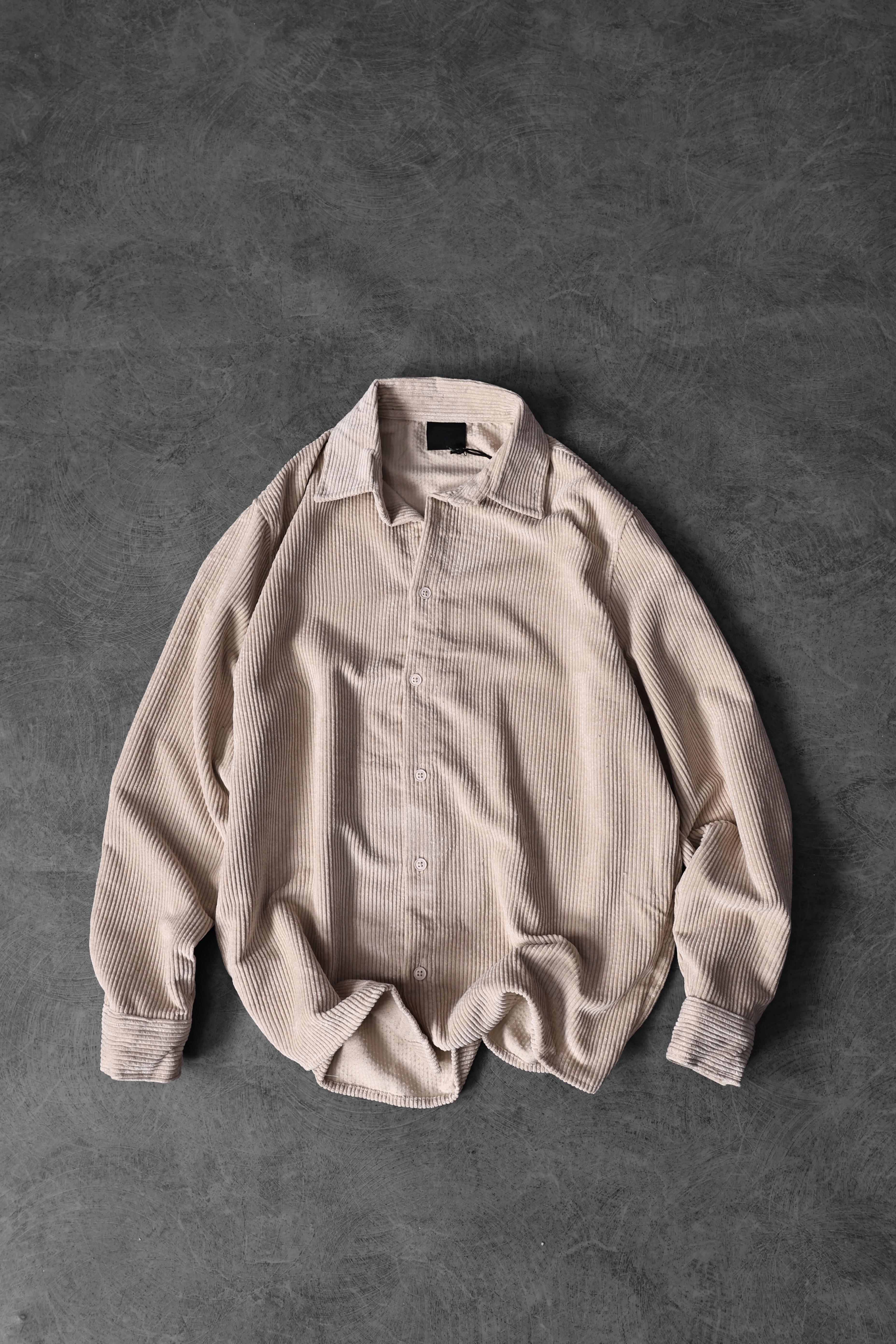 Erkek Bej Oversize Kadife Kumaş Gömlek (S7100)