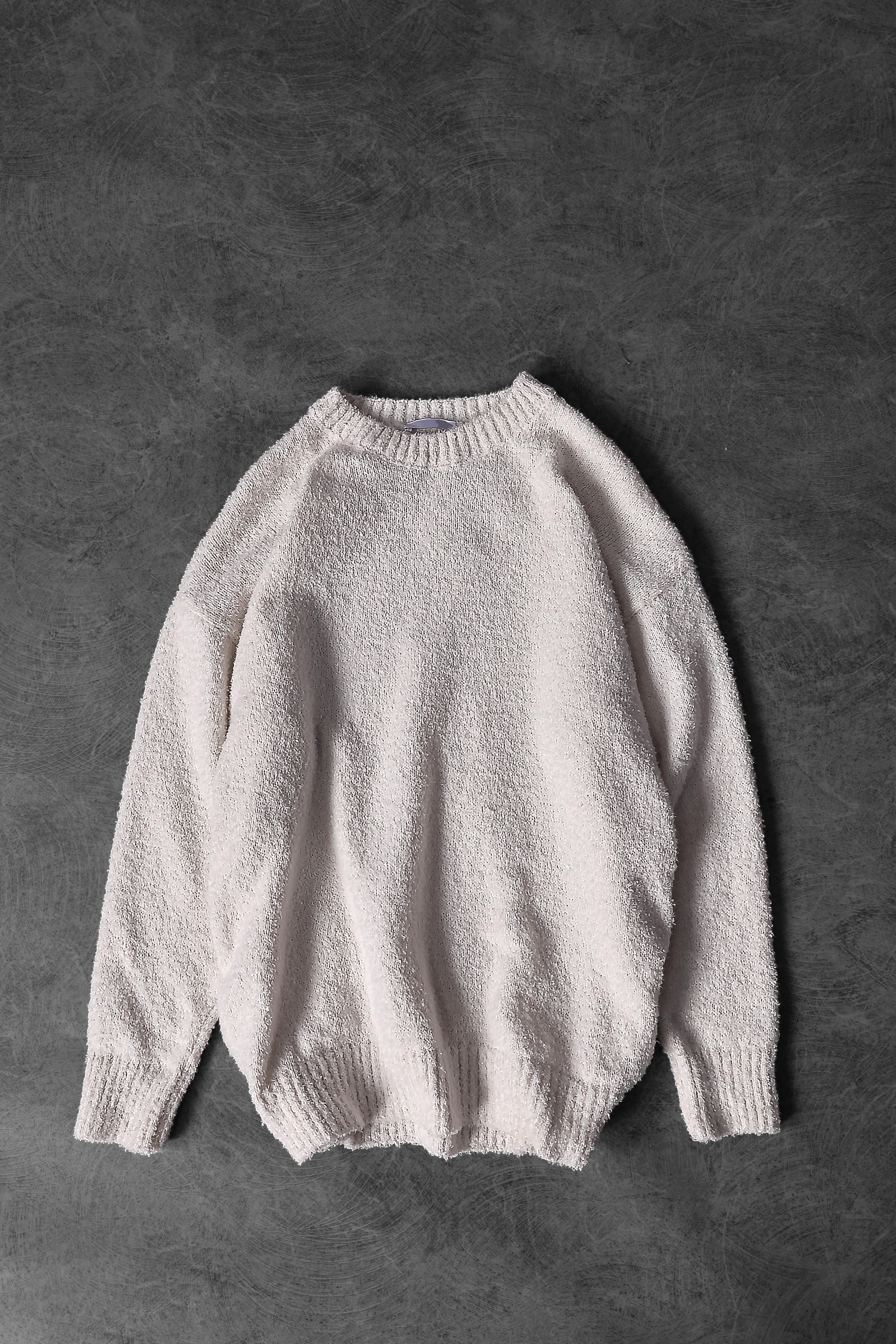 Erkek Ekru Bisiklet Yaka Oversize Yün Kazak (S5635)