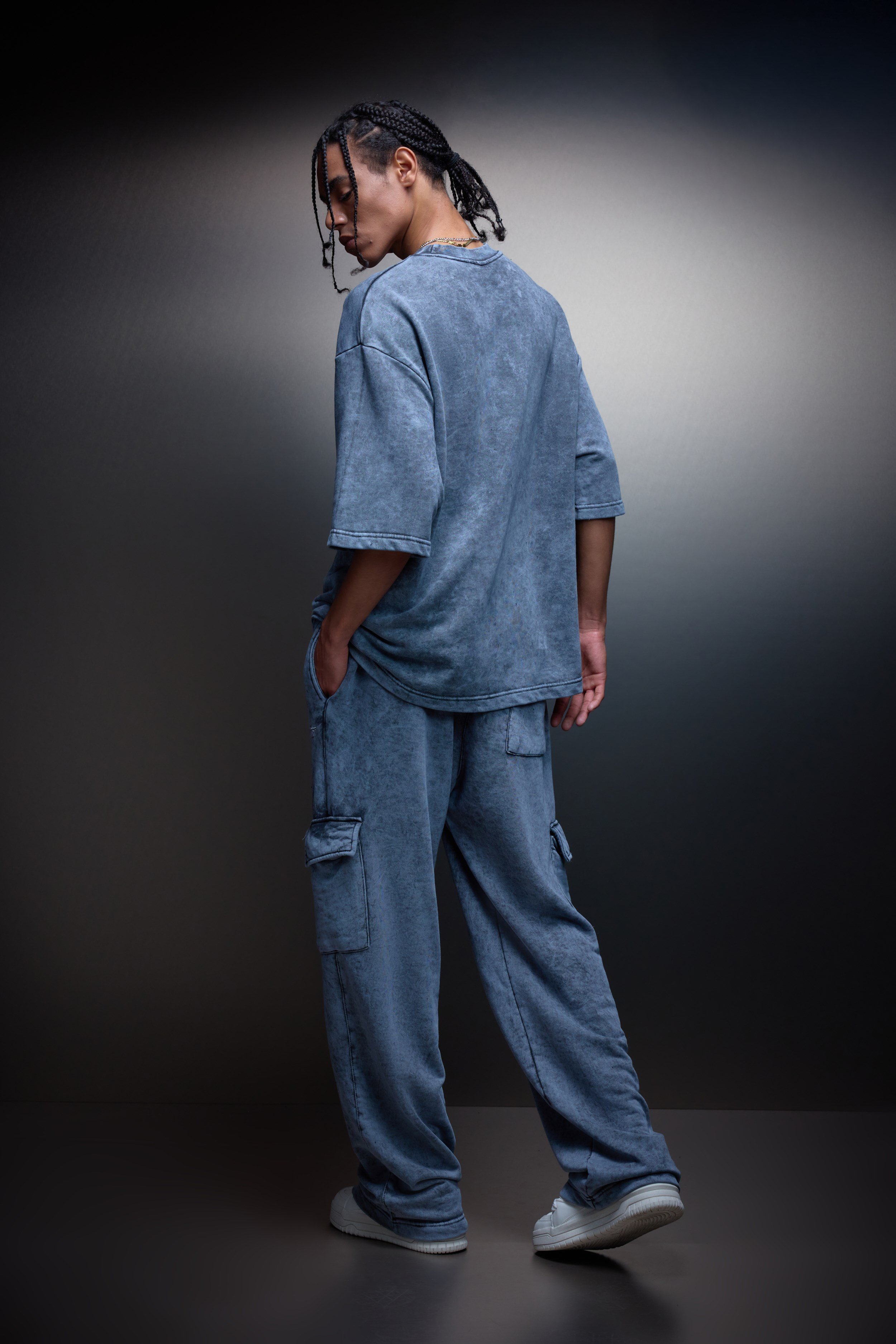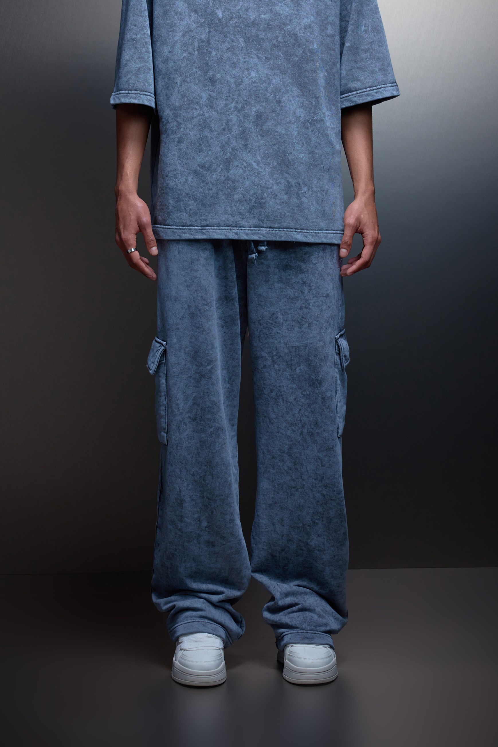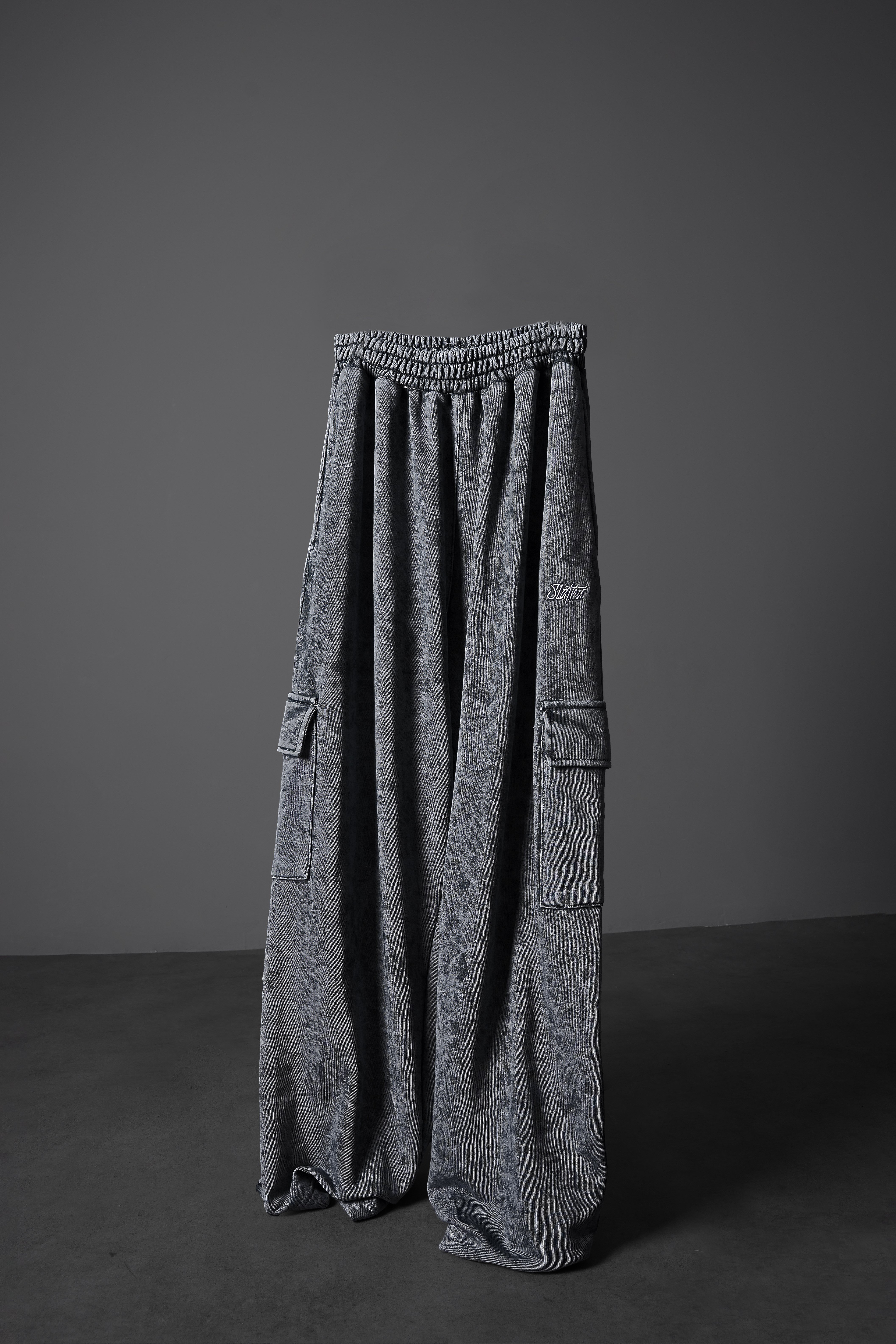 Erkek Gri Basic Yıkama Efektli Kargo Cepli Baggy Eşofman (S13003)