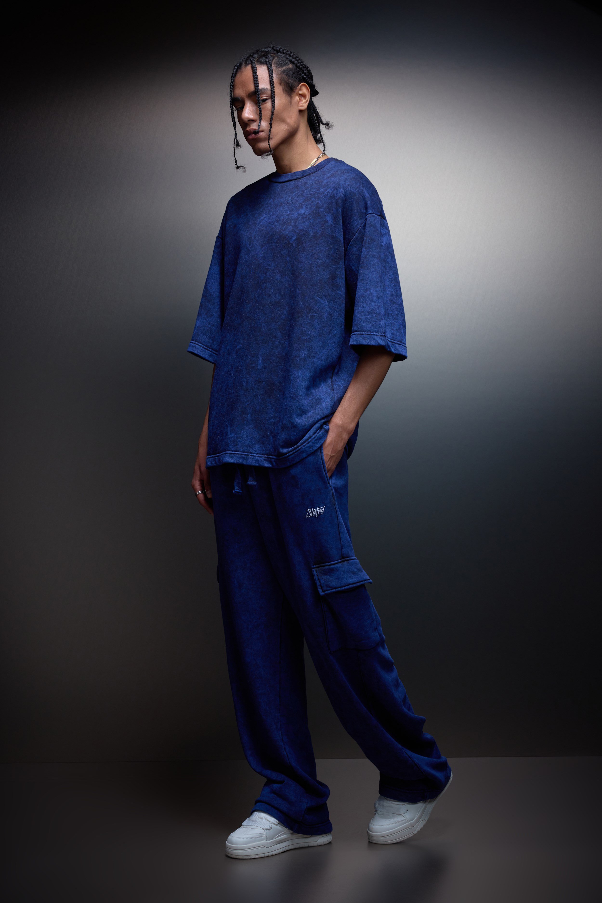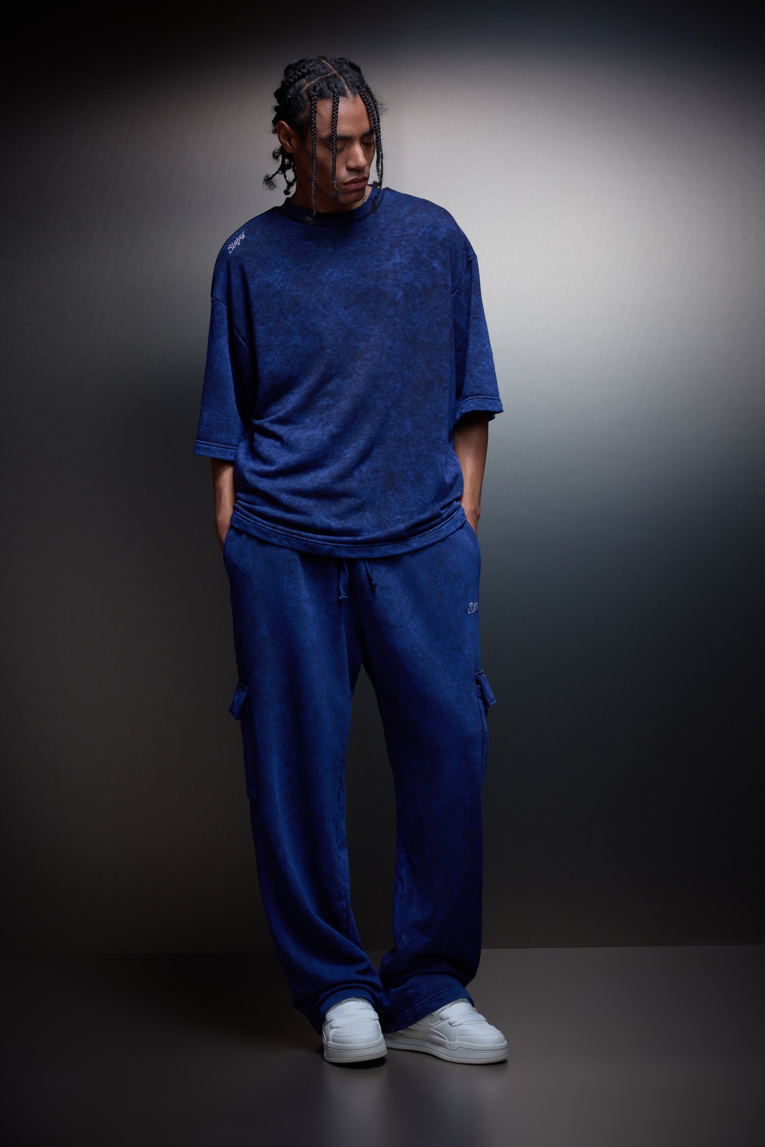 Baggy fit kalıp; geniş kesimi ve dengeli oranlarıyla maksimum hareket özgürlüğü sunar. Vücuda yapışmaz, rahat ve net bir siluet oluşturur.