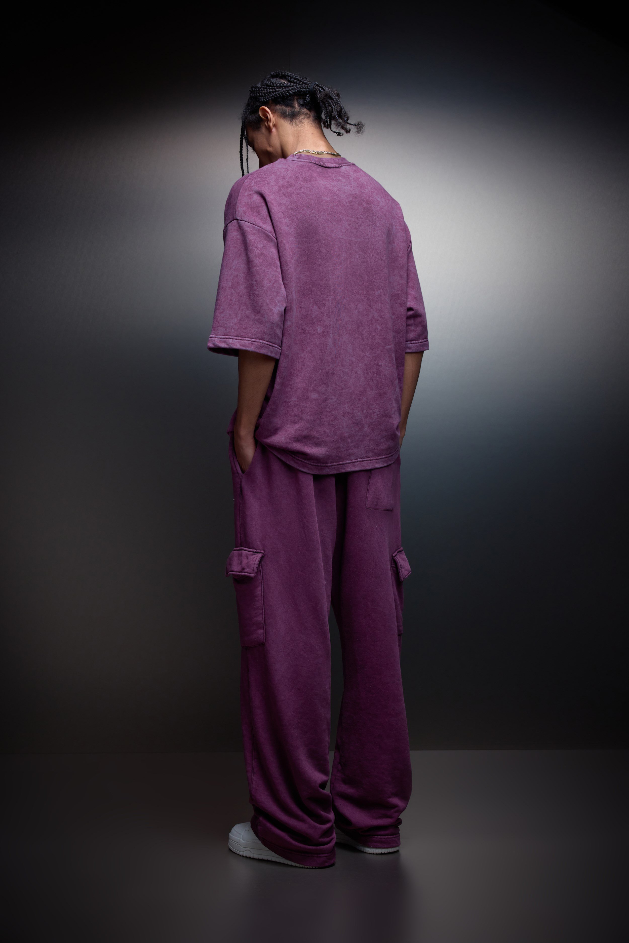 Erkek Mürdüm Basic Yıkama Efektli Kargo Cepli Baggy Eşofman (S13003)