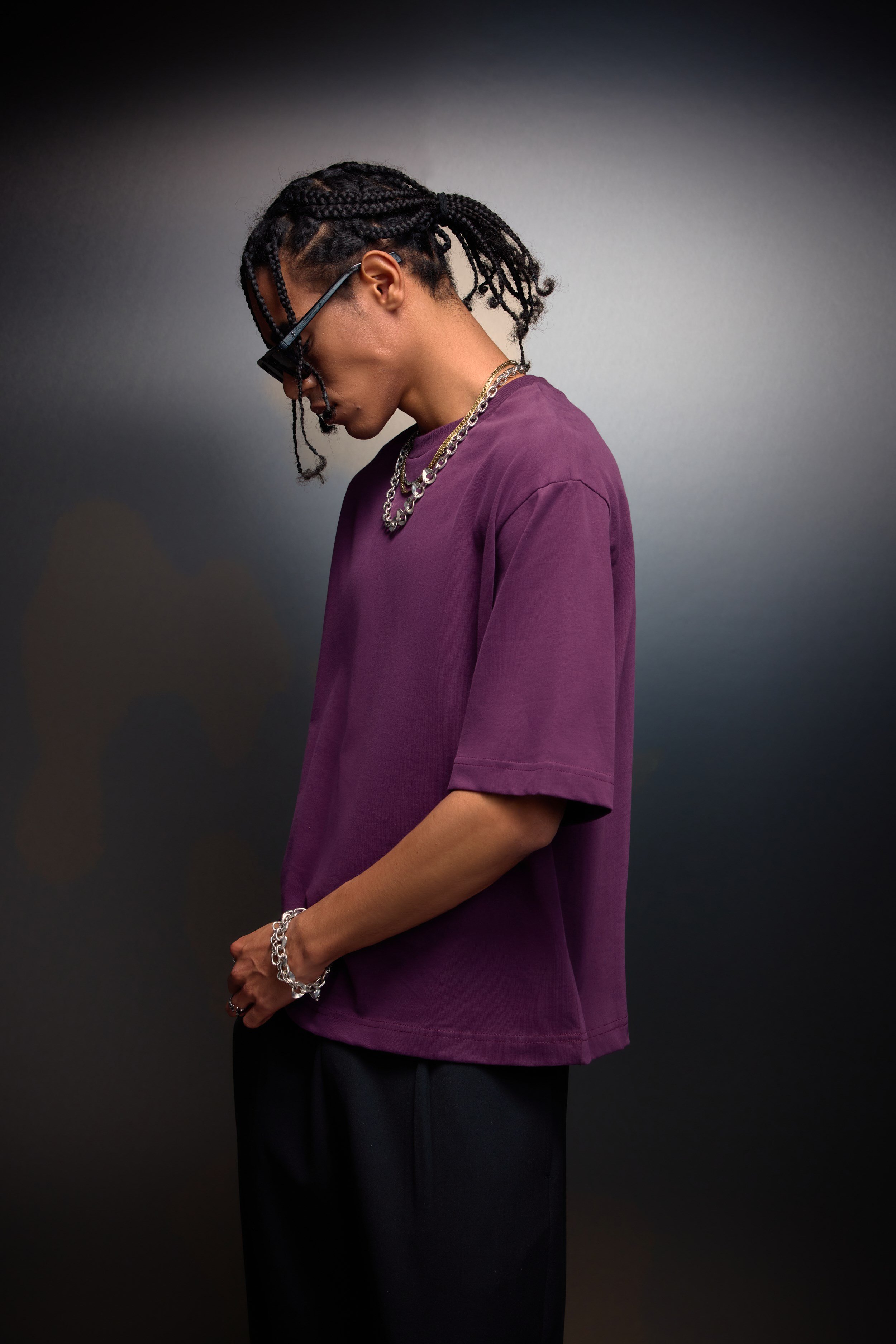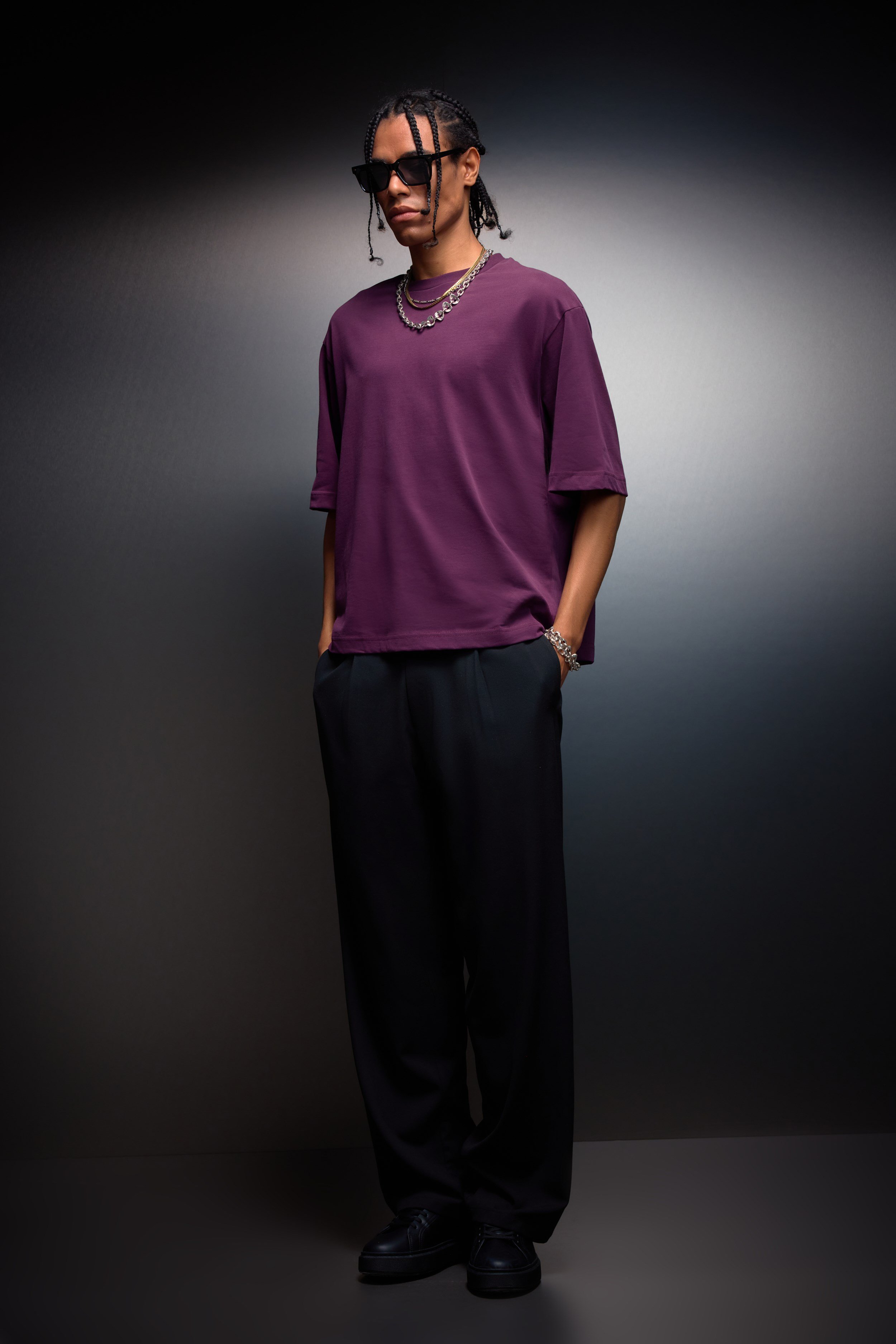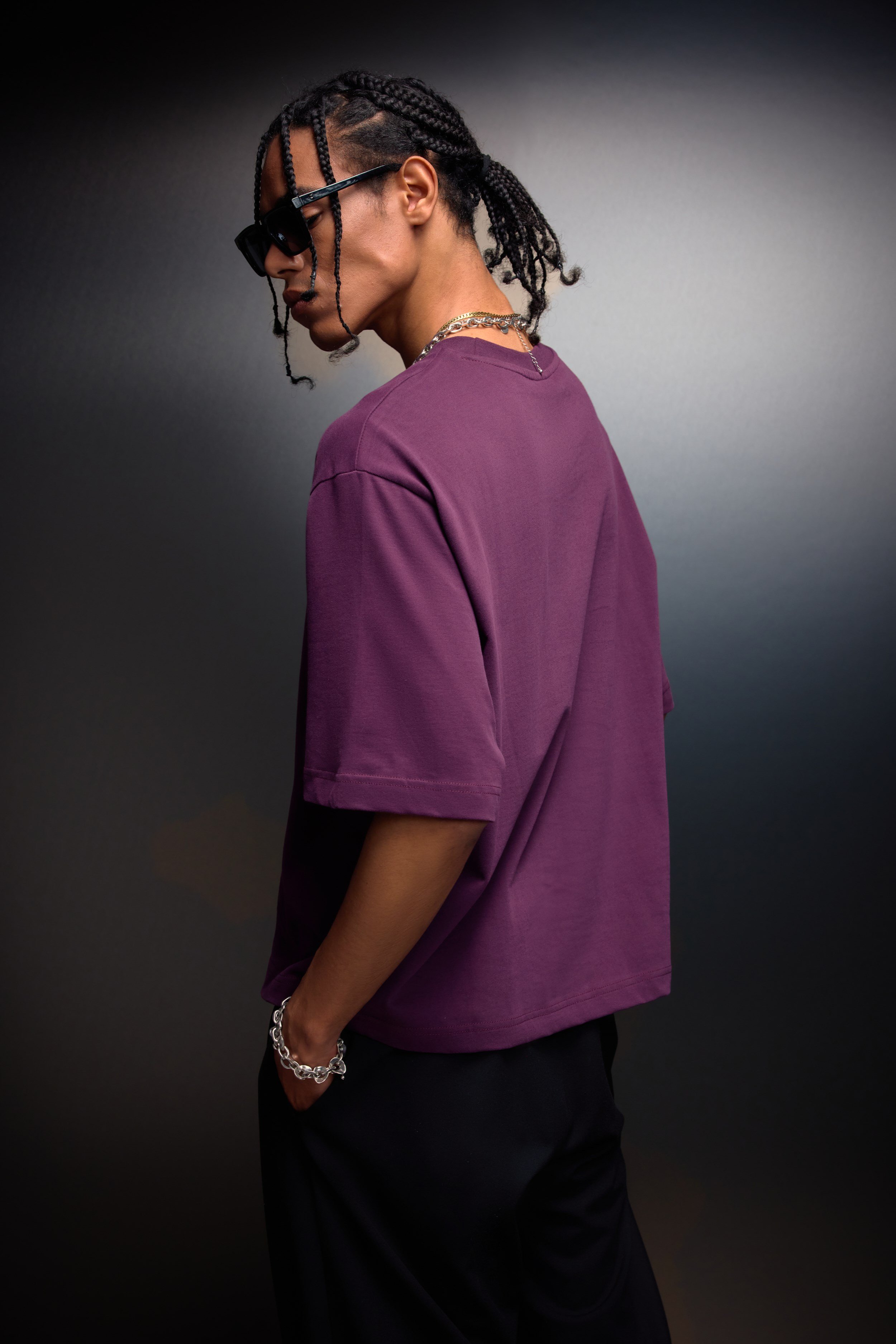 Erkek Mürdüm Boxy Fit Basic Tshirt (S10001)