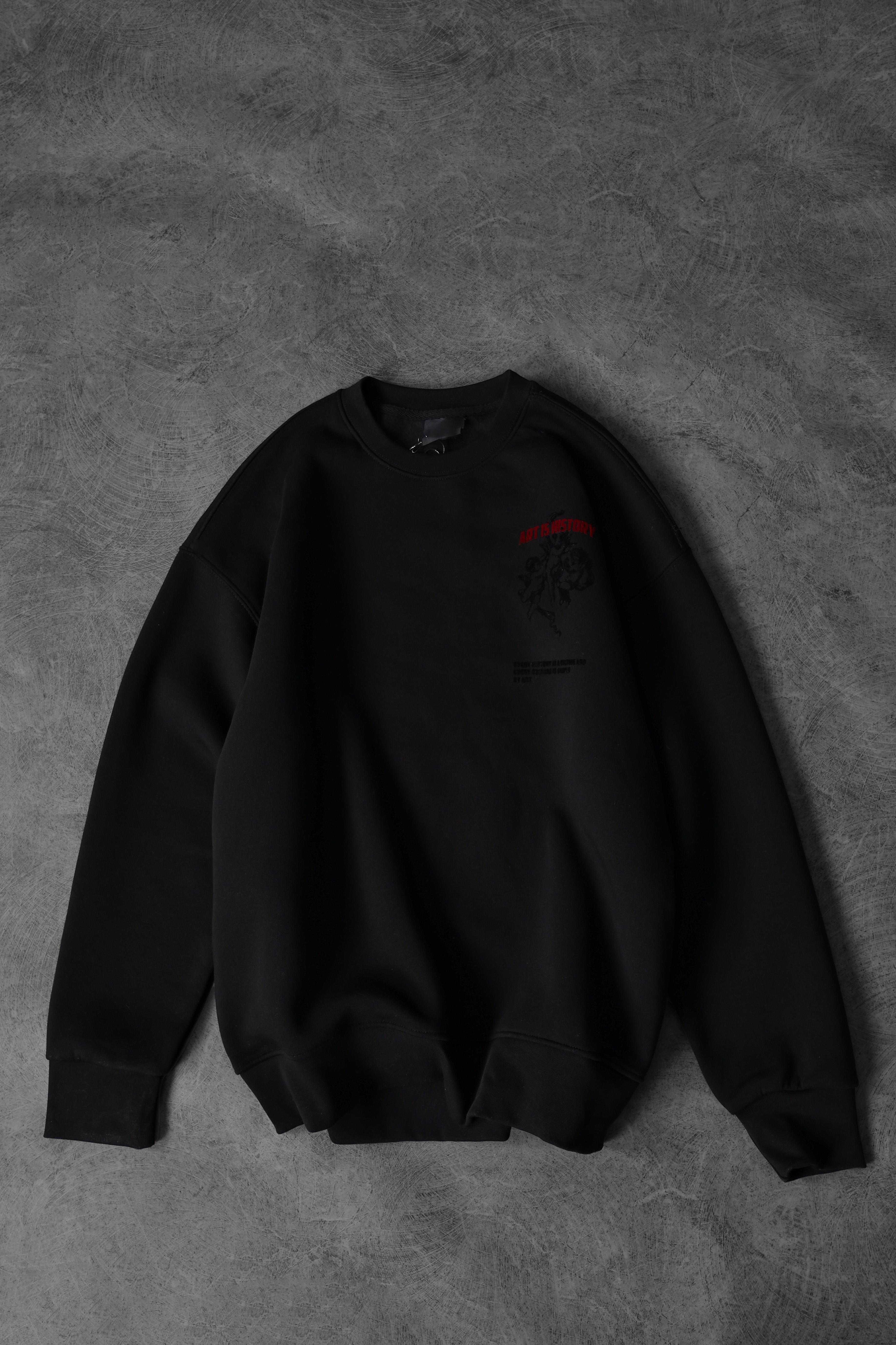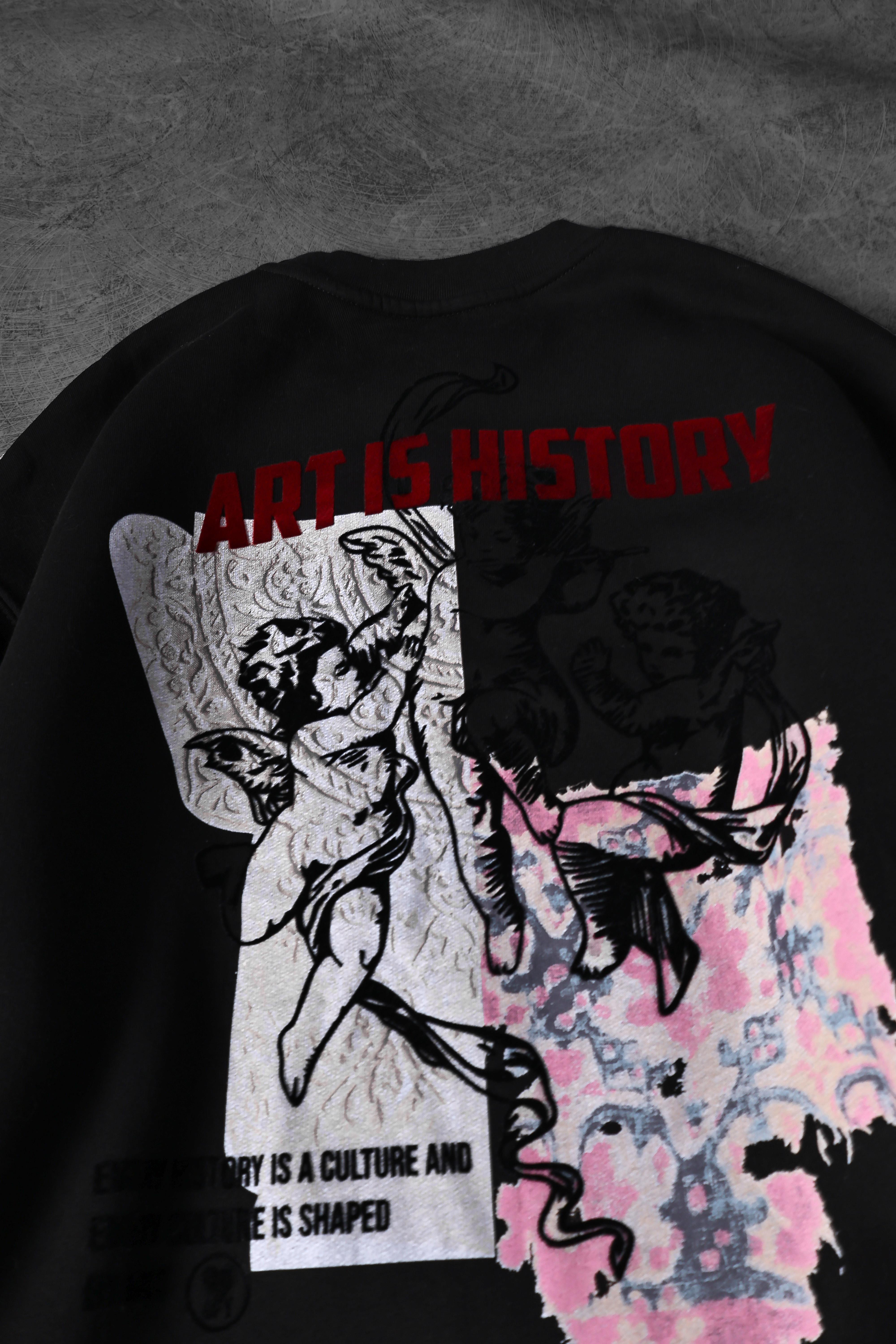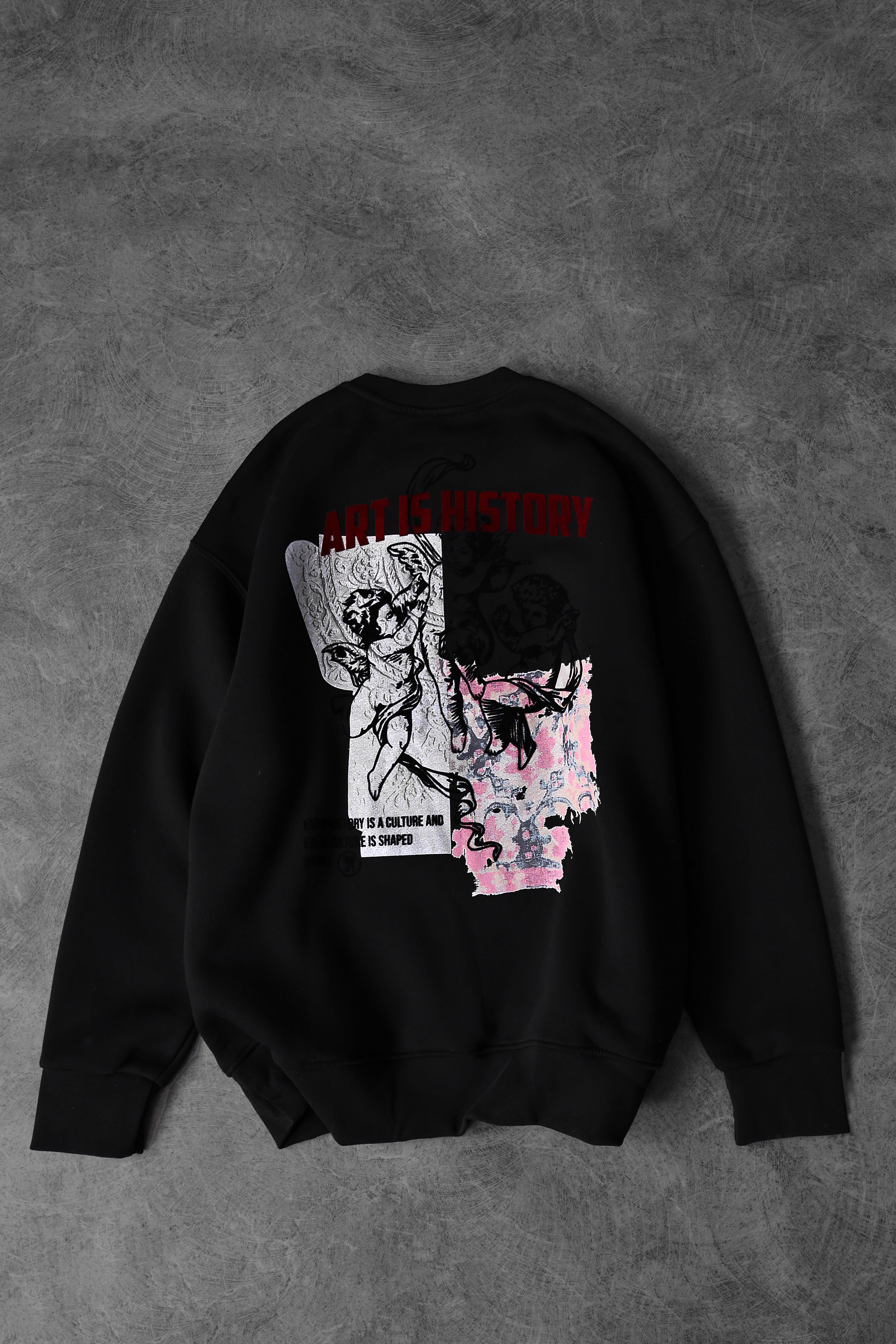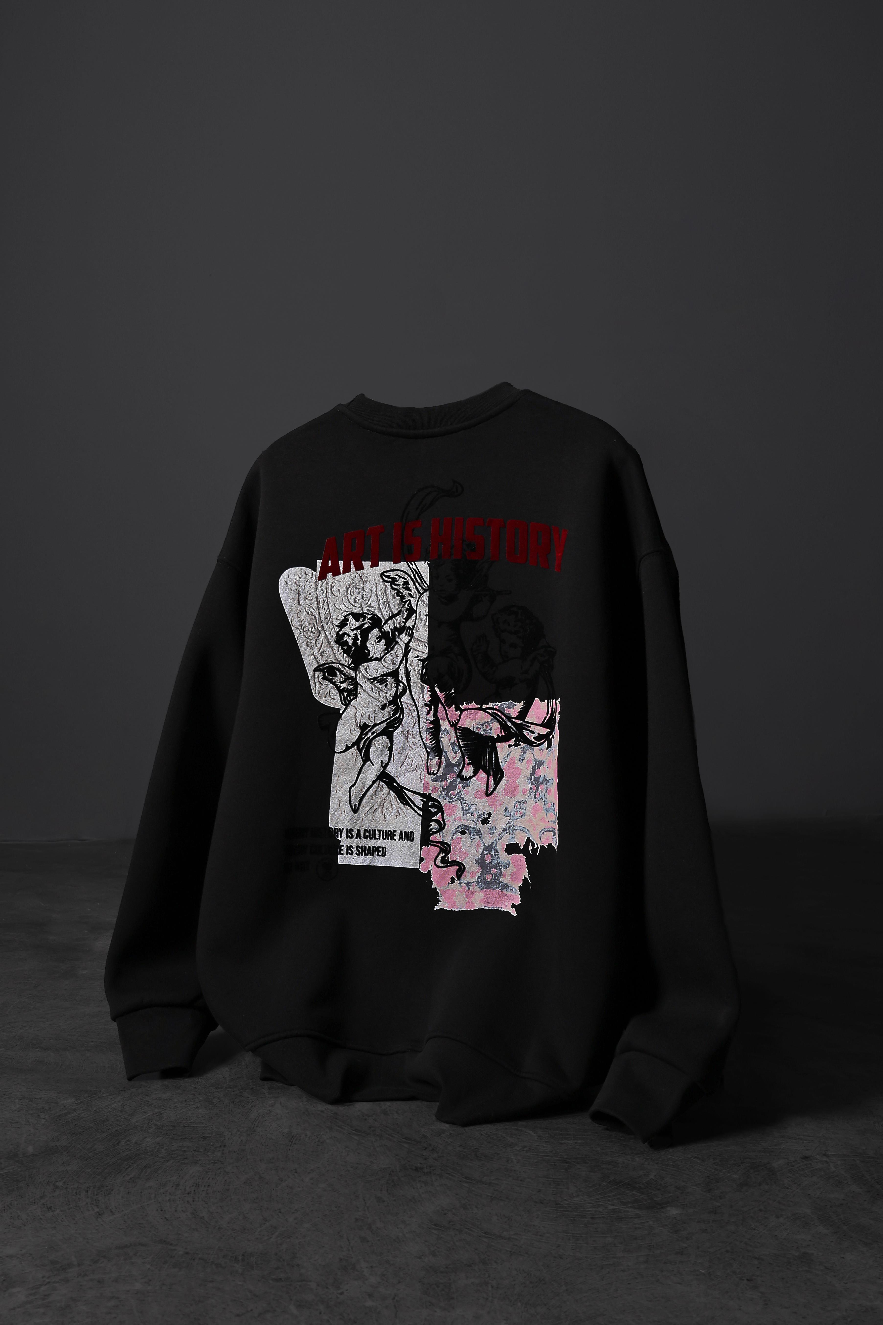 Erkek Siyah Art İs History Flok Baskılı Oversize Sweatshirt (S5612)