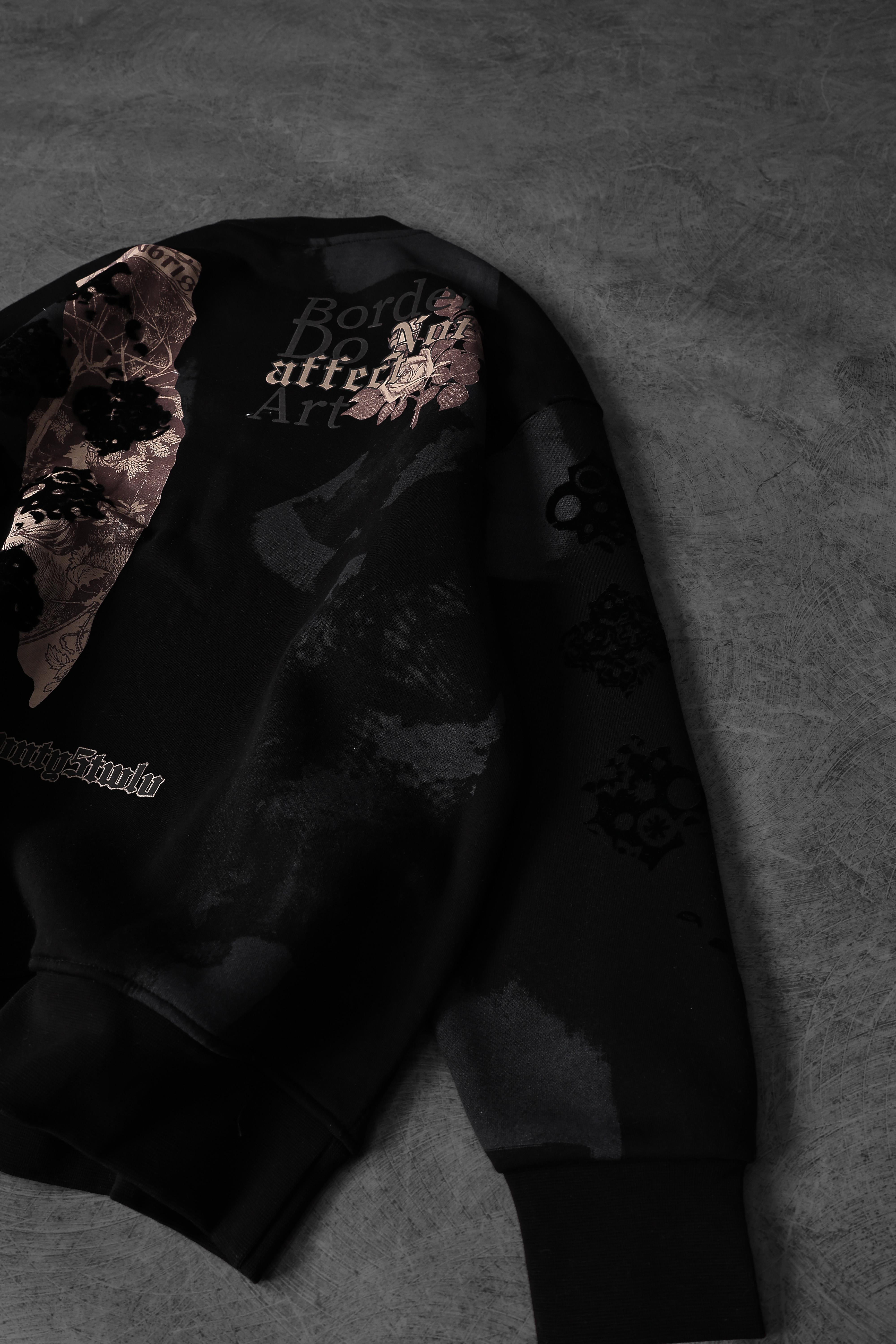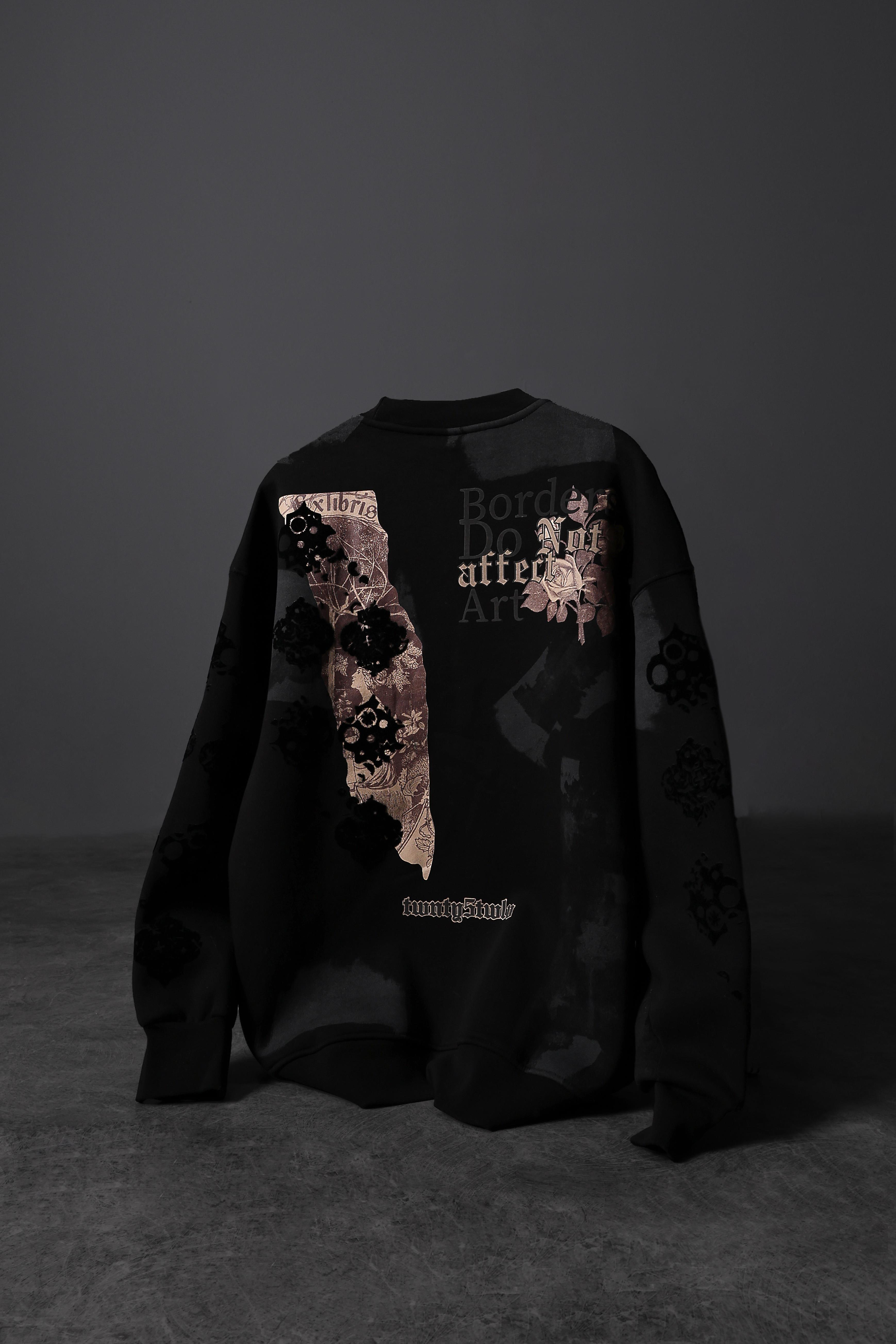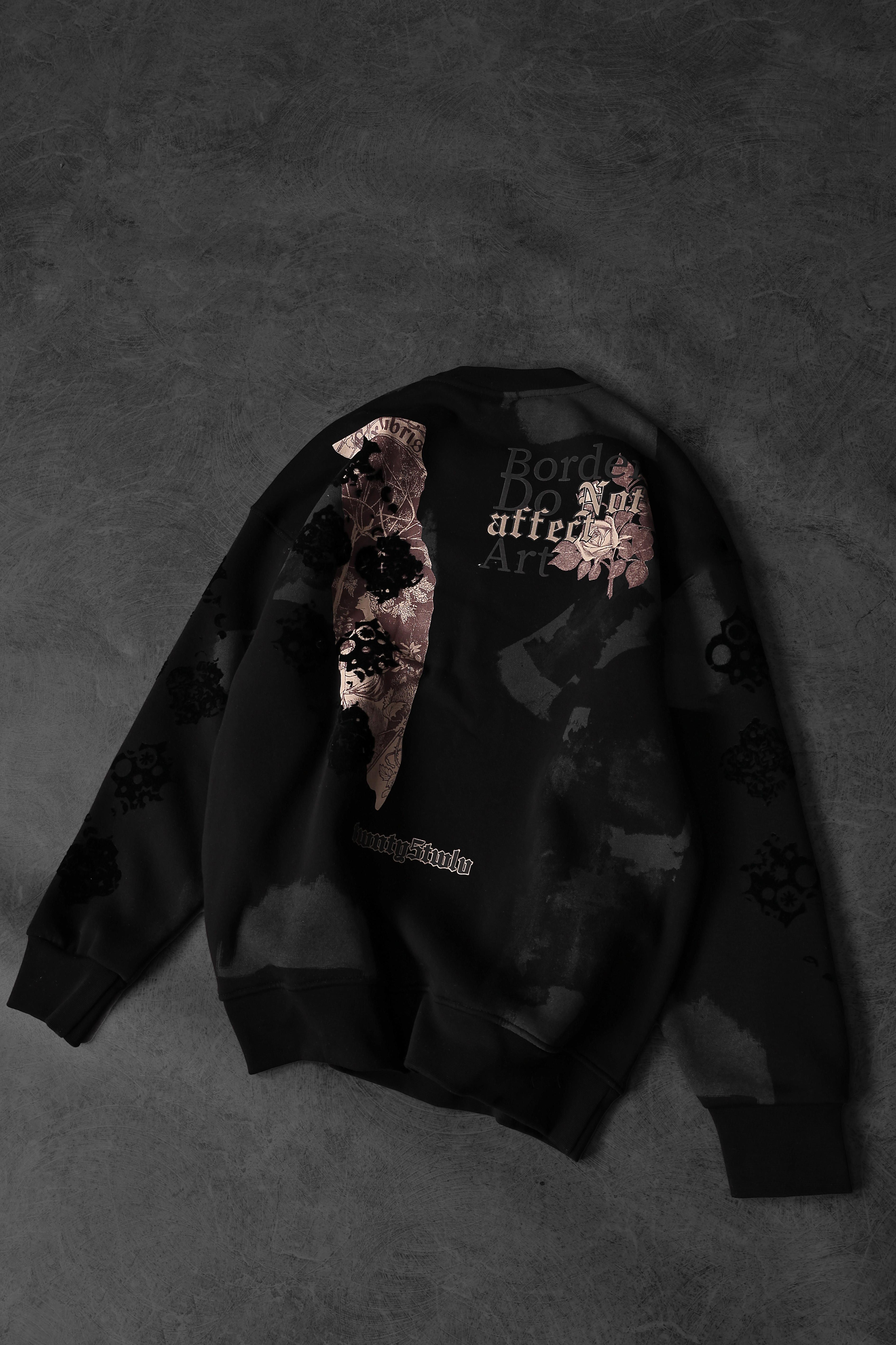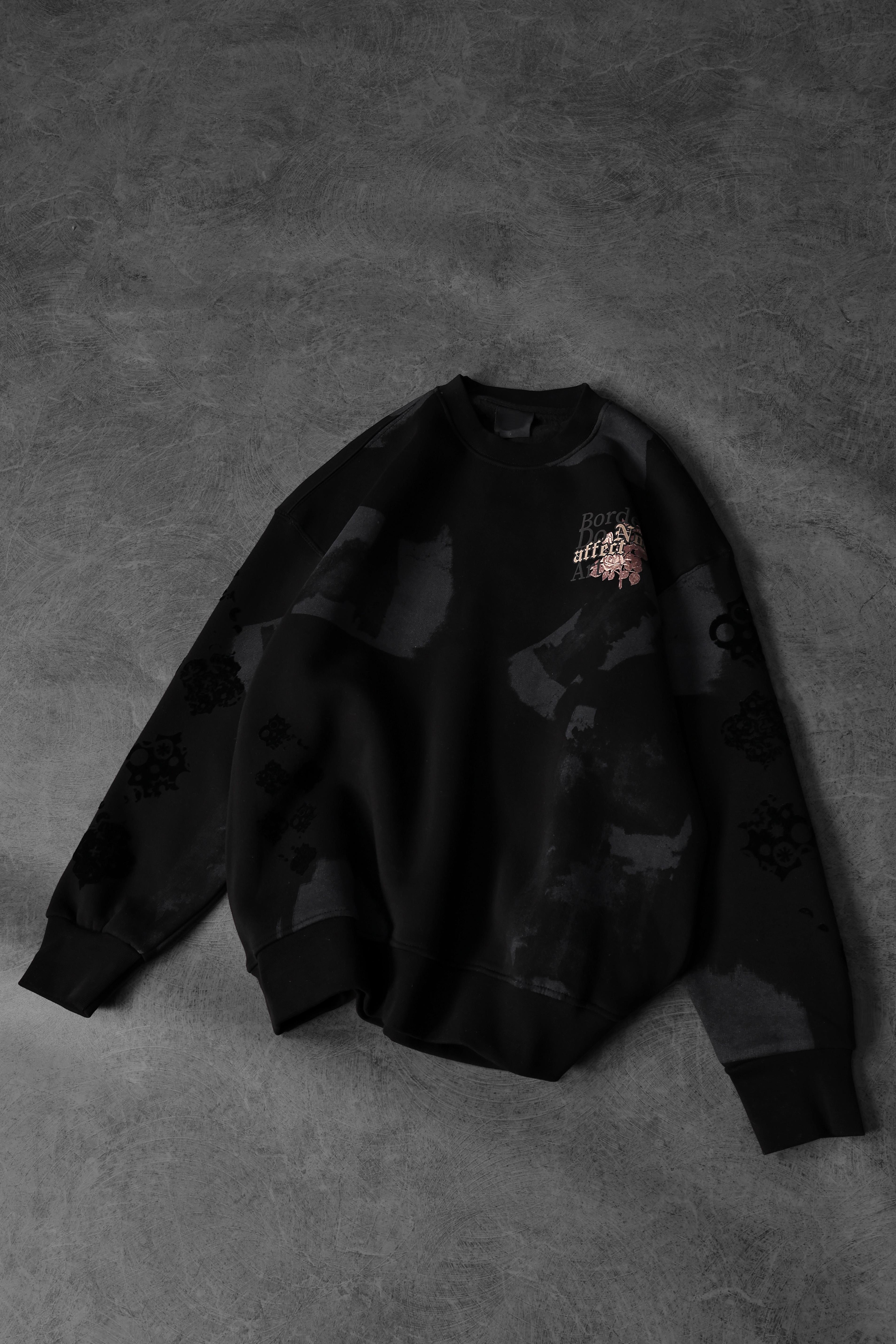 Erkek Siyah Borders Flok Baskılı Oversize Sweatshirt (S5610)