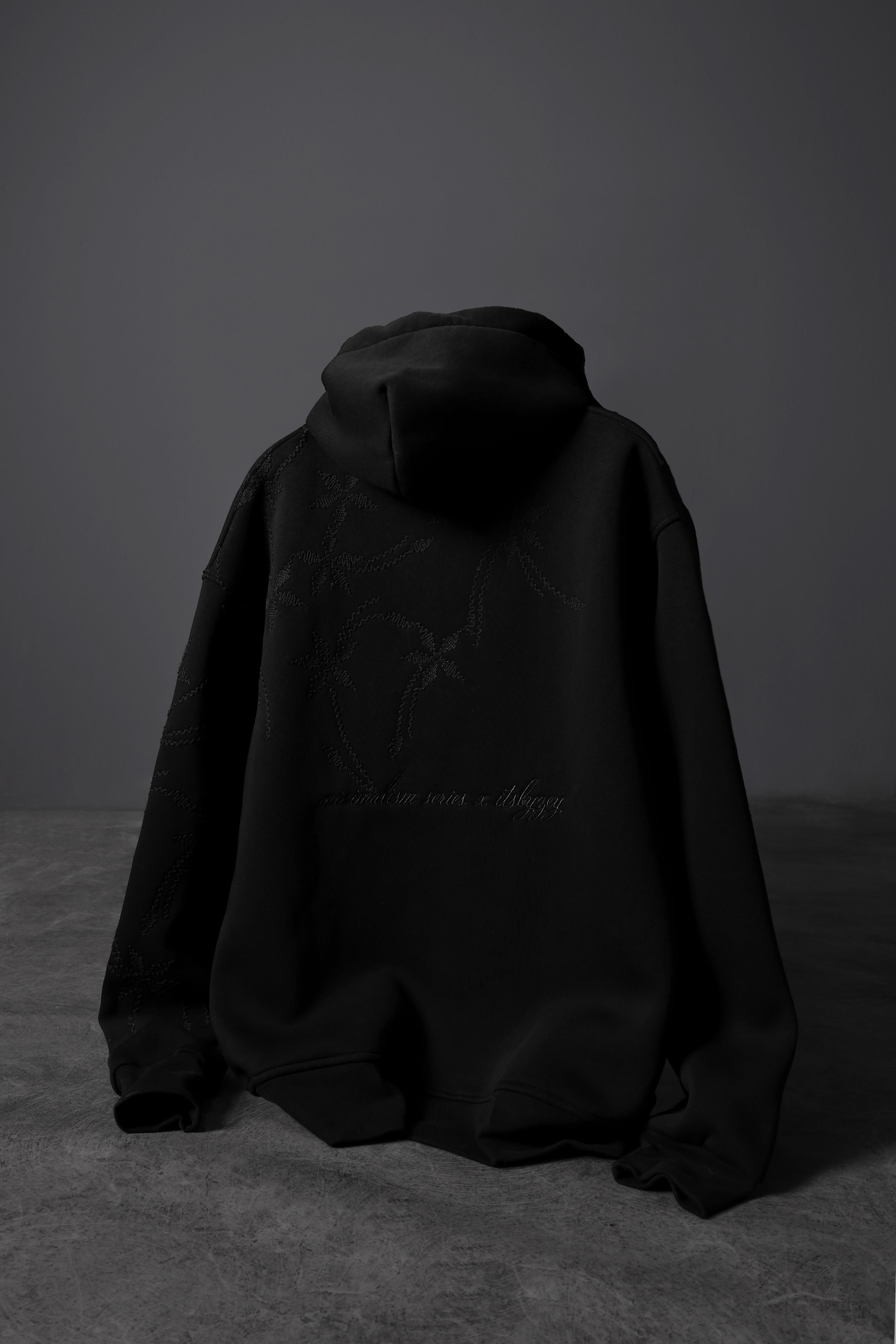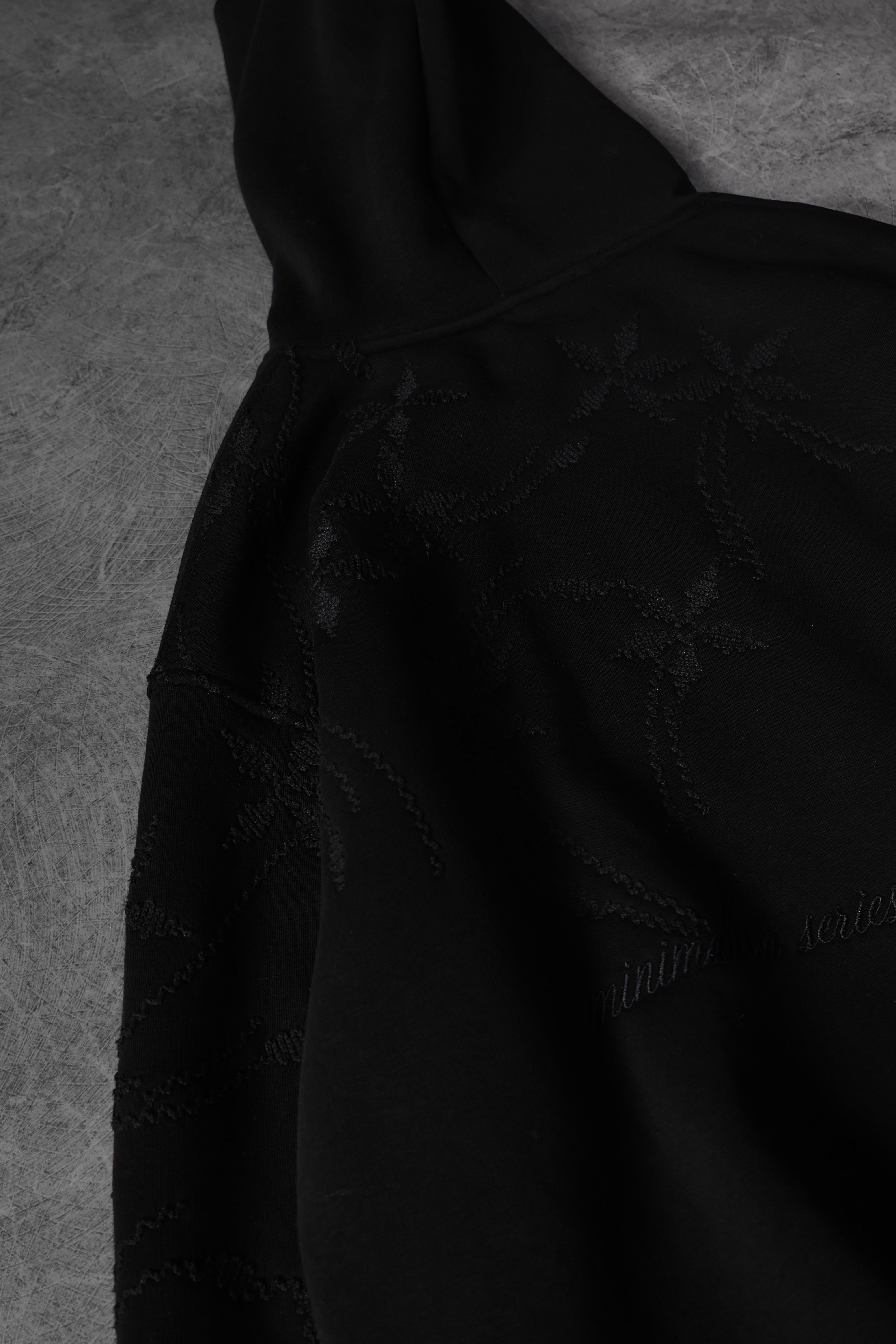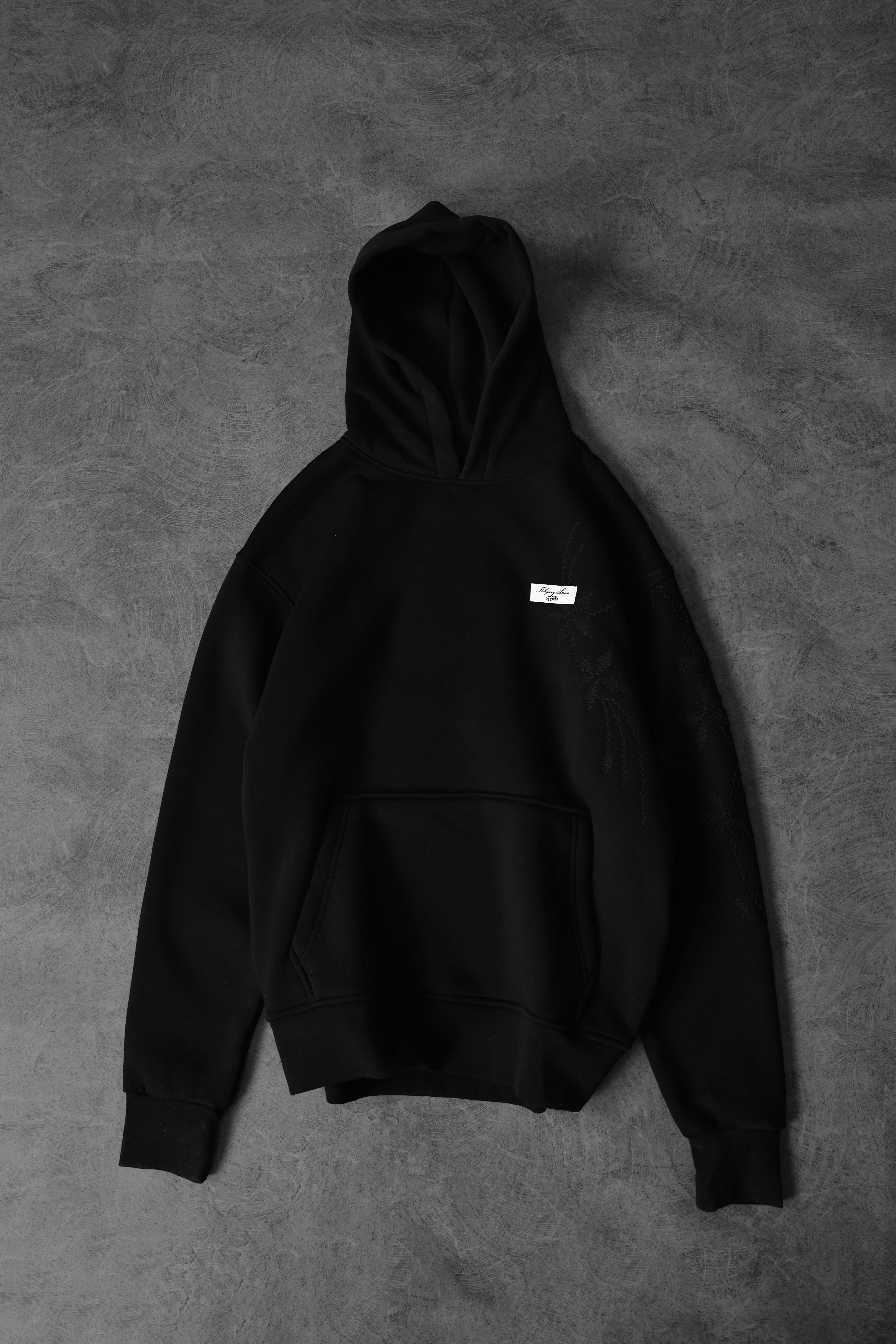 Erkek Siyah Palm Nakışlı Oversize Kapüşonlu Sweatshirt (S5629)